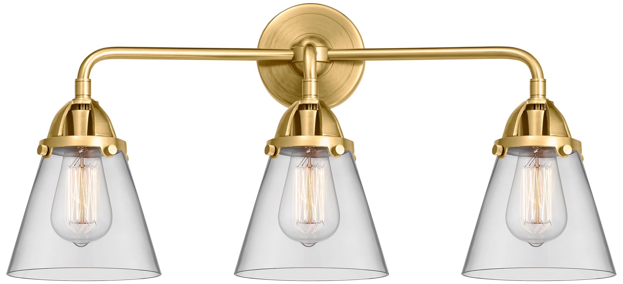 Nouveau 2 Cone 6" 3 Light 24" Bath Light - Satin Gold - Clear Sha