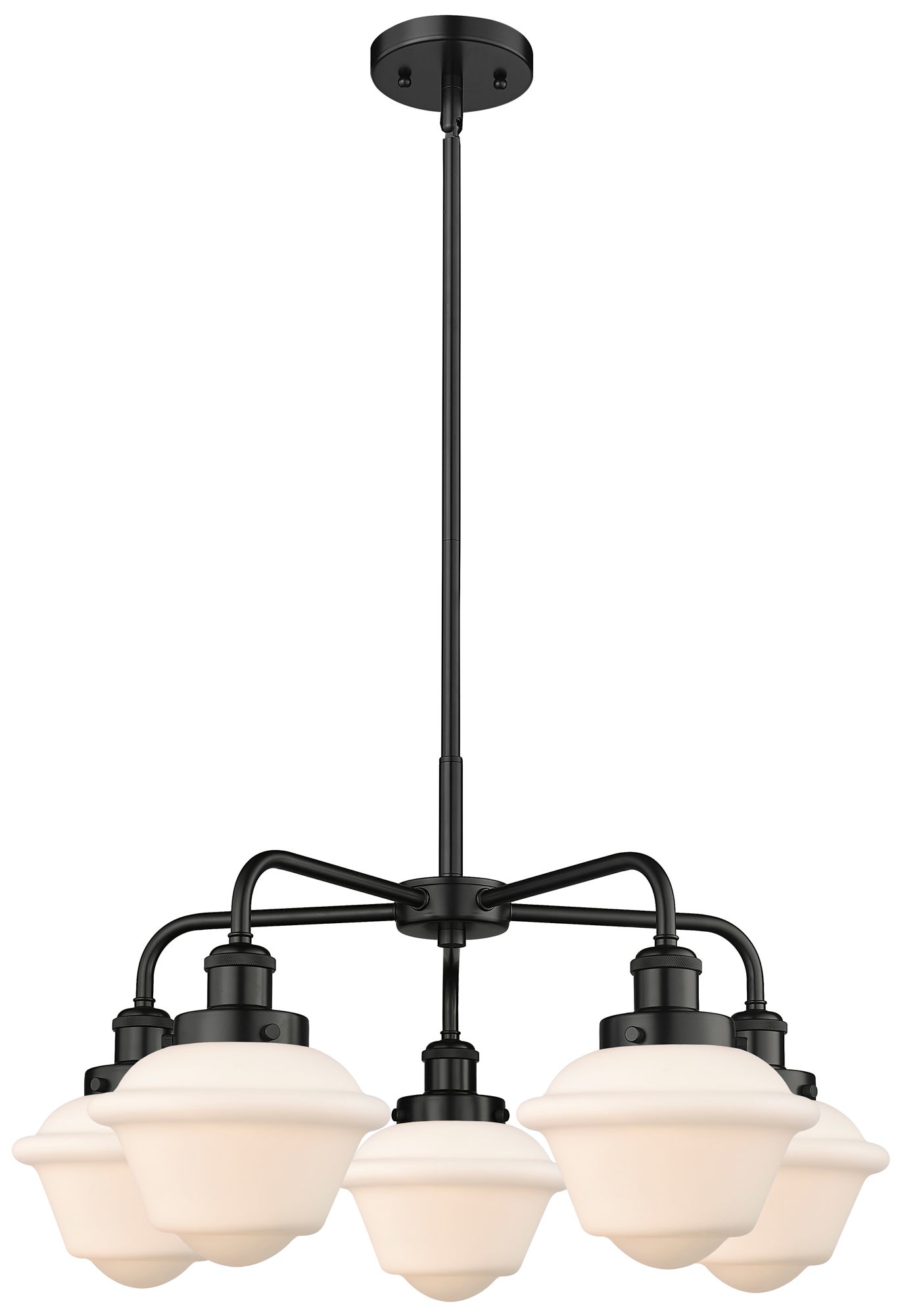 Oxford 24.5"W 5 Light Matte Black Stem Hung Chandelier w/ White Shade