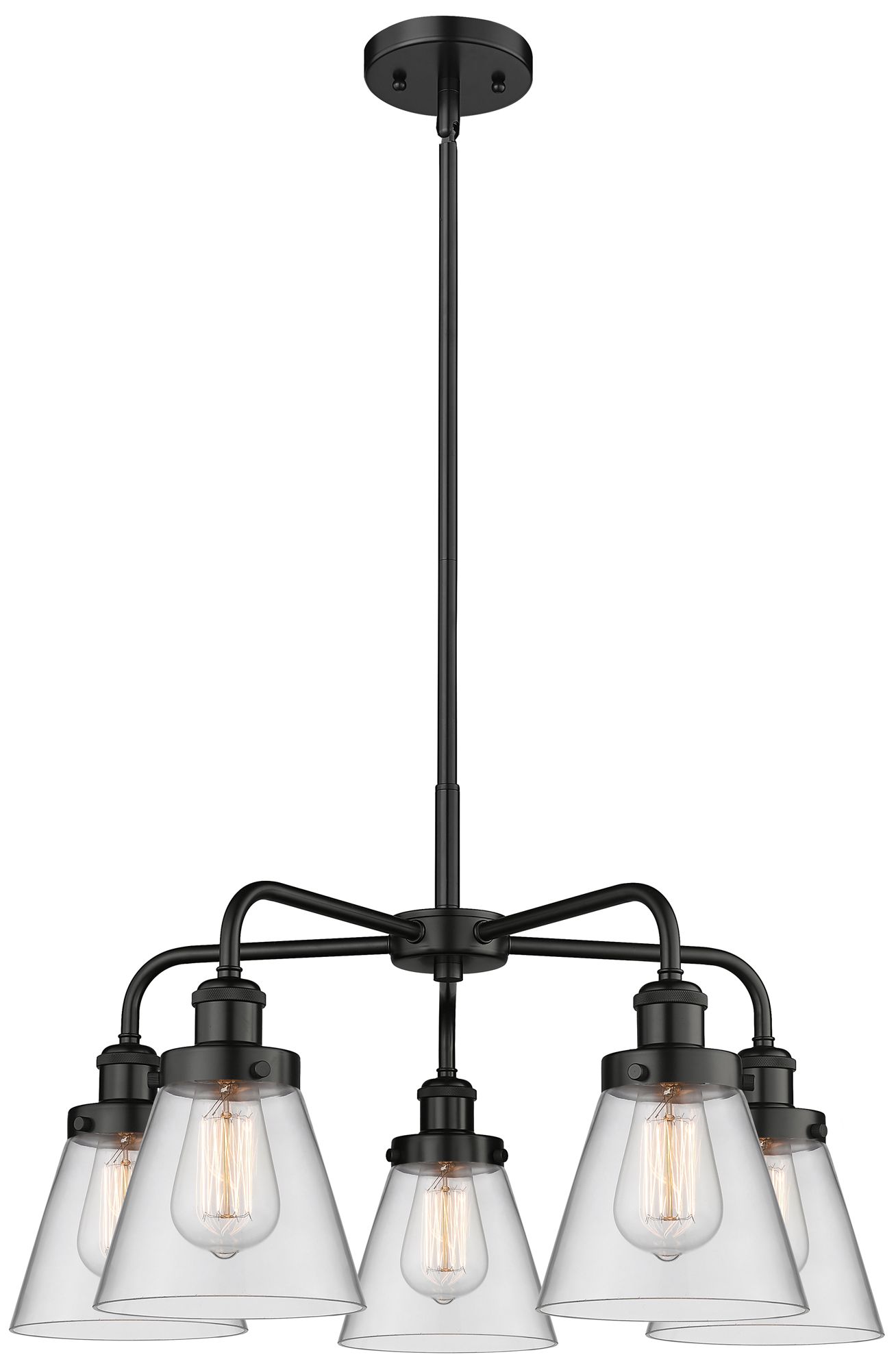 Cone 24.25"W 5 Light Matte Black Stem Hung Chandelier w/ Clear Glass S