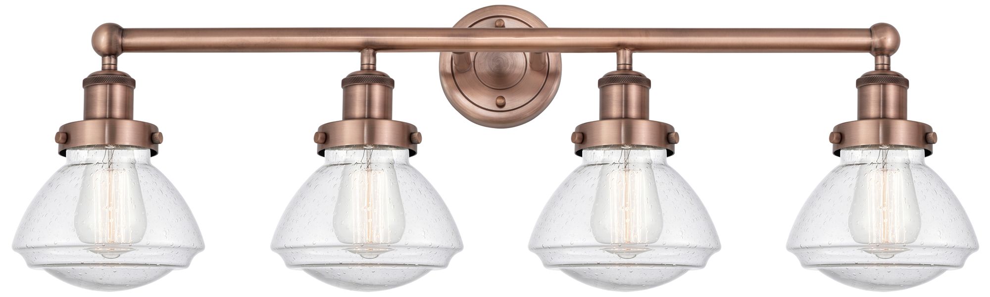 Olean 33.5"W 4 Light Antique Copper Bath Vanity Light With Mercury Sha