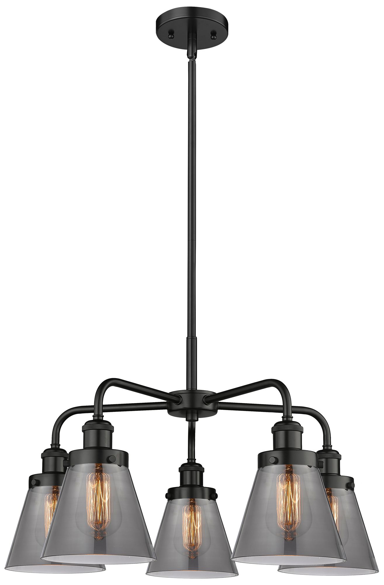 Cone 24.25"W 5 Light Matte Black Stem Hung Chandelier w/ Smoke Glass S