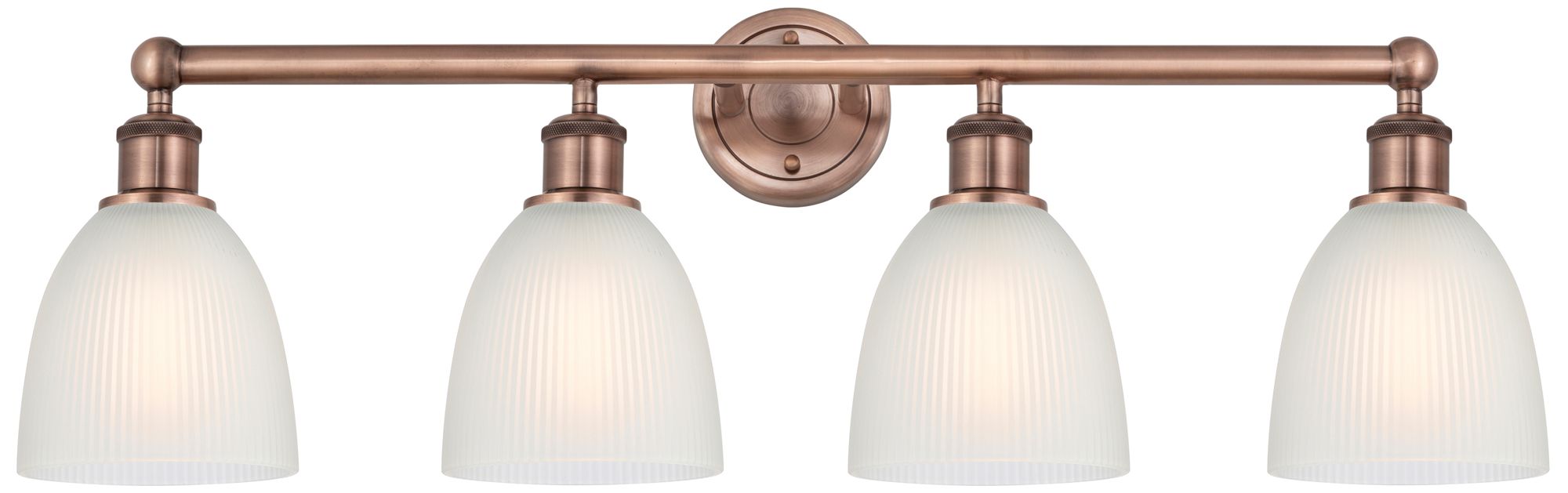 Castile 33" Wide 4 Light Antique Copper Bath Vanity Light With White S