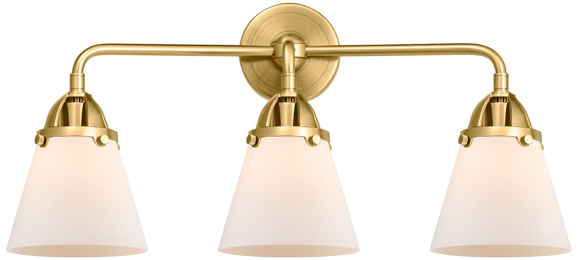 Nouveau 2 Cone 6" 3 Light 24" Bath Light - Satin Gold - Matte Whi