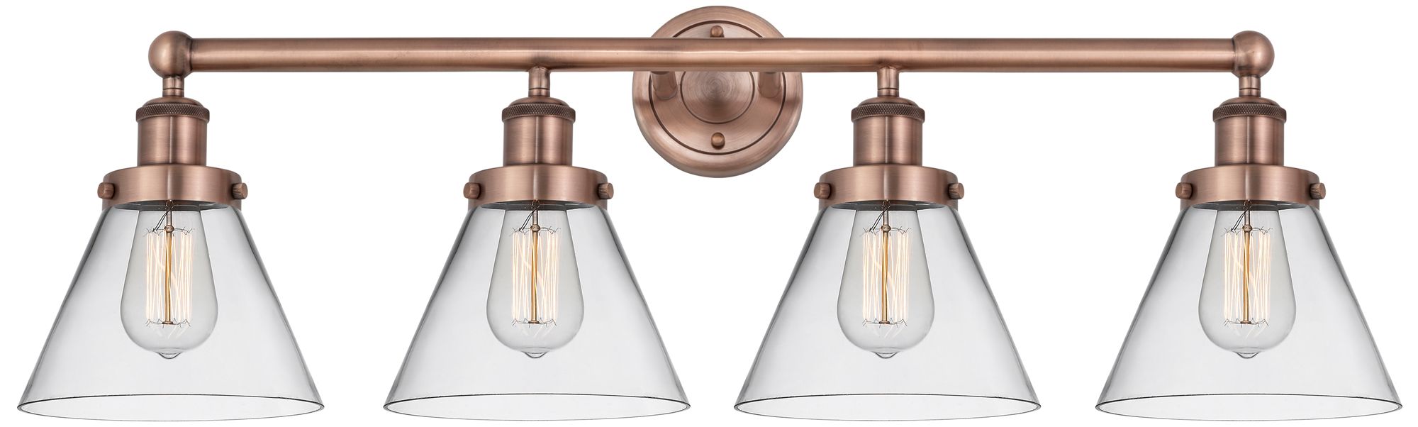 Large Cone 34.75"W 4 Light Antique Copper Bath Light With Clear Shade