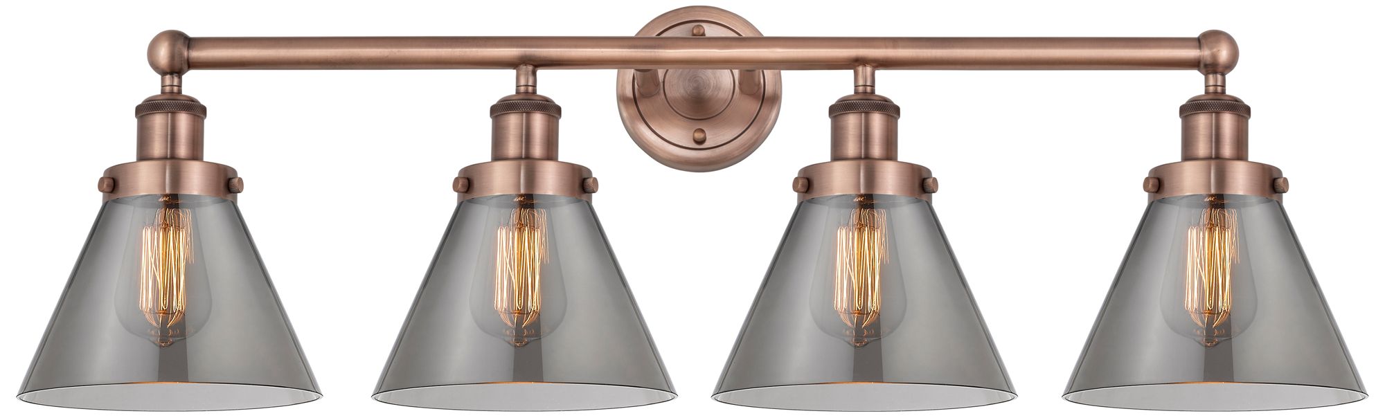 Large Cone 33.5"W 4 Light Antique Copper Bath Light With Plated Smoke