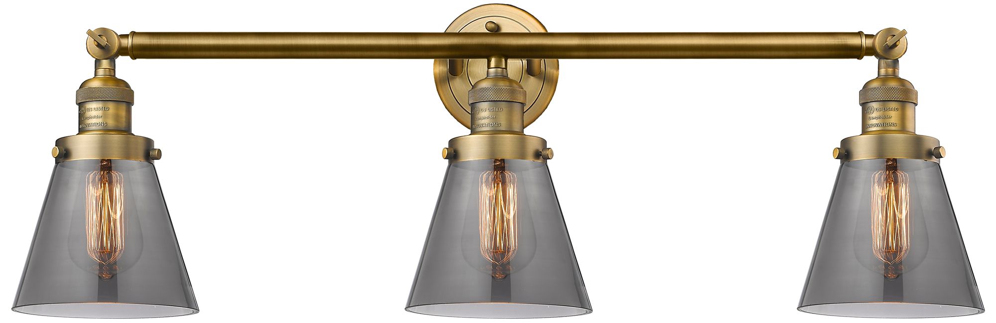Cone 3 Light 30" LED Bath Light - Brushed Brass - Plated Smoke Shade