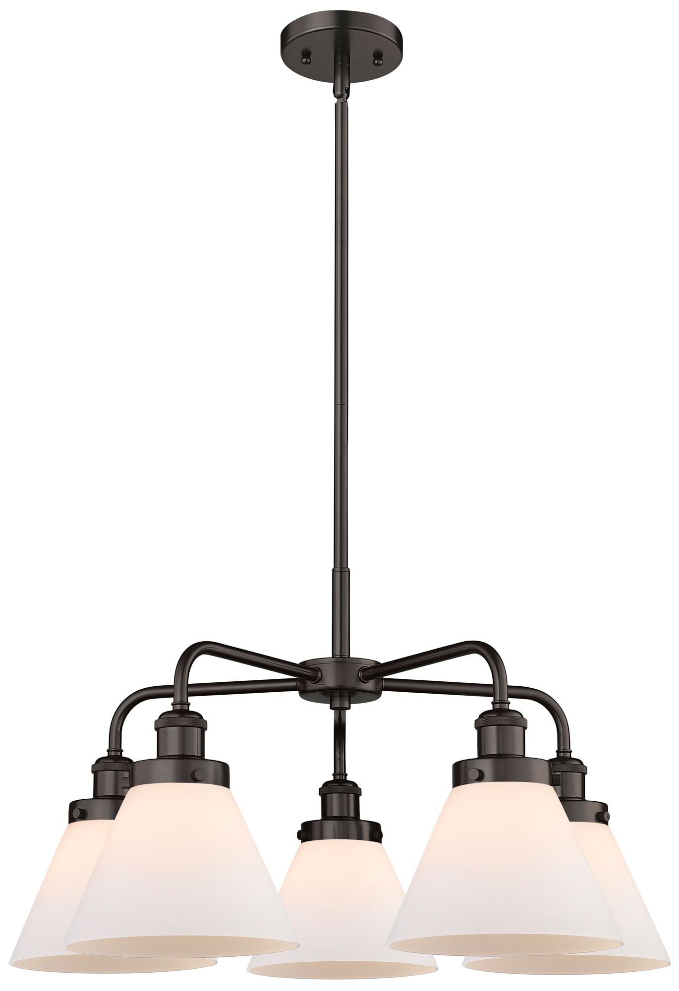 Cone 25.75"W 5 Light Oil Rubbed Bronze Stem Hung Chandelier w/ White S