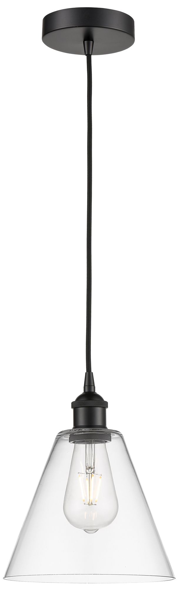 Edison Glass Cone 8" Matte Black Cord Hung Mini Pendant w/ Clear Shade