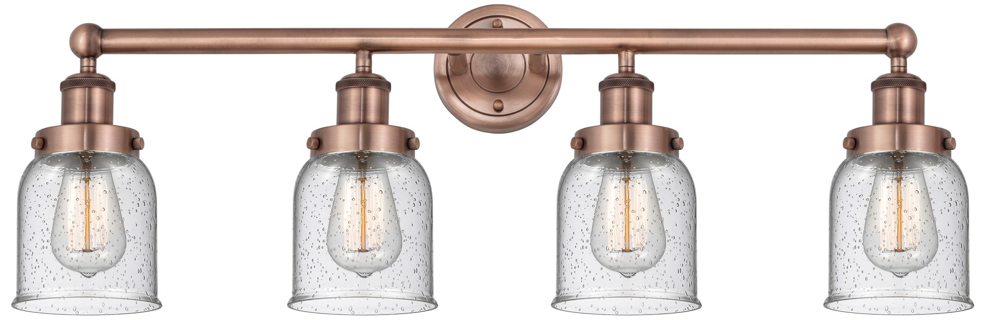 Small Bell 33.5"W 4 Light Antique Copper Bath Vanity Light With Seedy