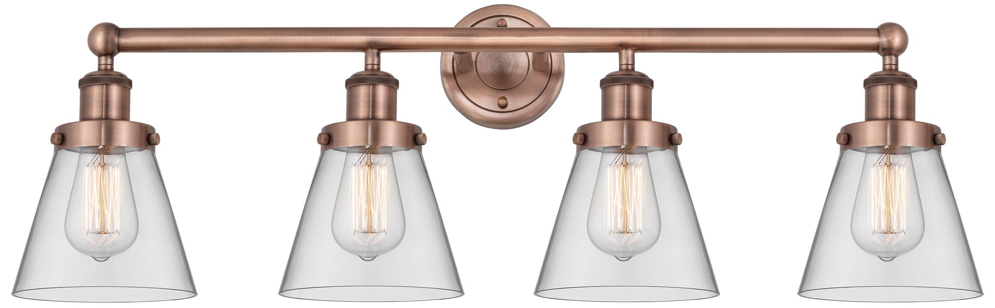 Edison Cone 33.5"W 4 Light Antique Copper Bath Light With Clear Shade