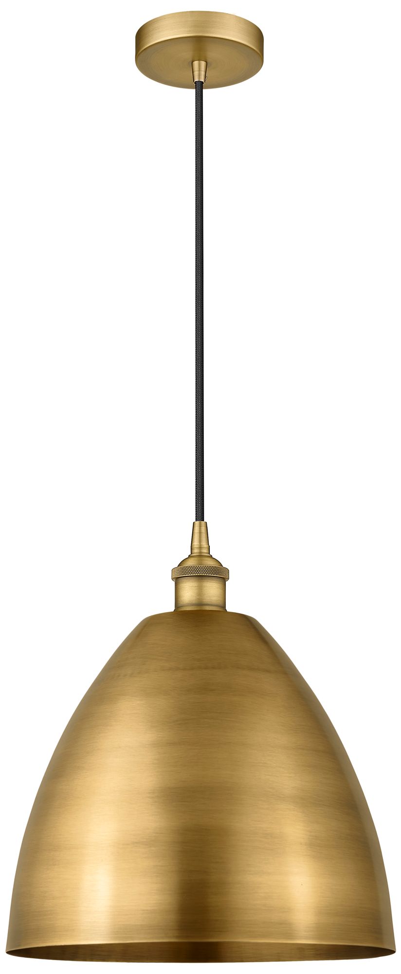 Edison Dome 12" Wide Brushed Brass Corded Mini Pendant w/ Matte Black