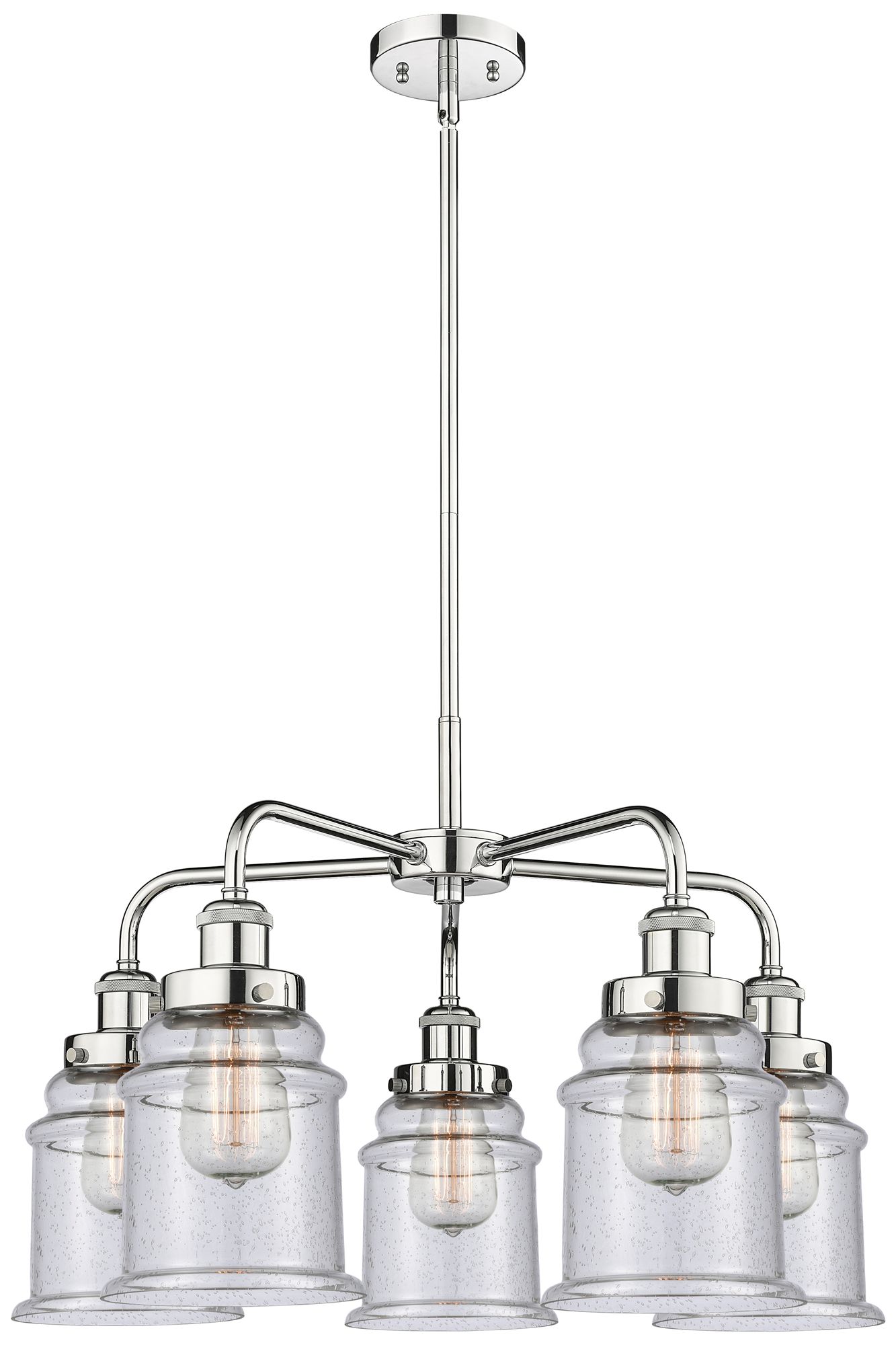 Canton 24"W 5 Light Polished Chrome Stem Hung Chandelier w/ Seedy Shad