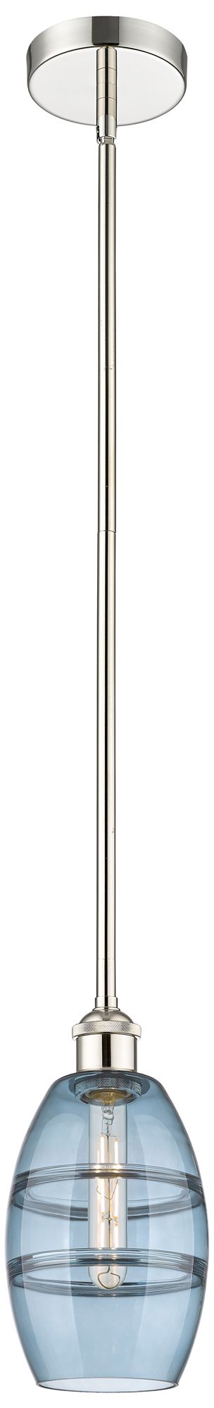 Edison Vaz 5.88"W Polished Nickel Stemmed Mini Pendant w/ Blue Shade