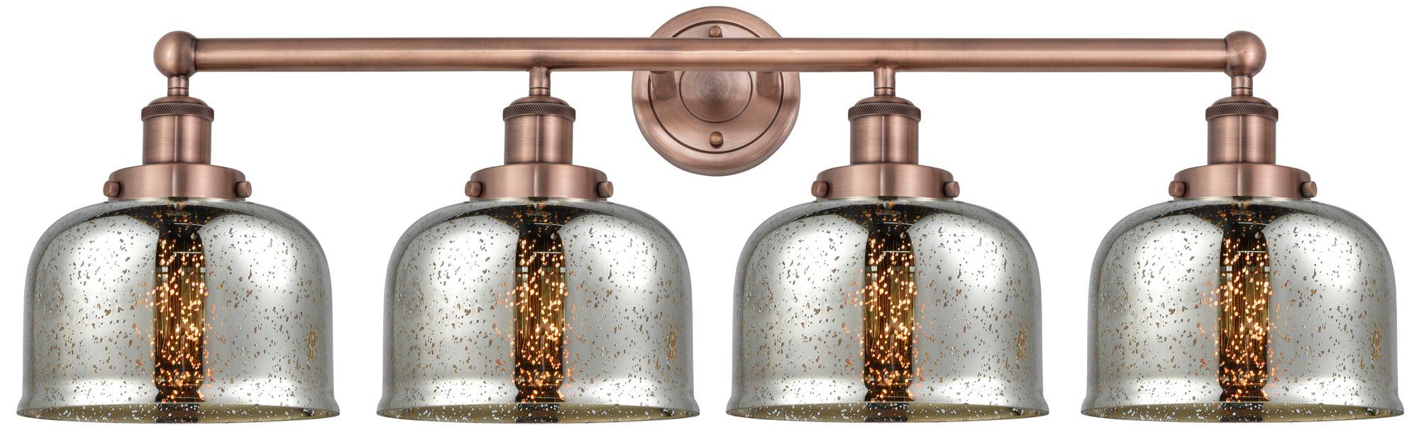 Large Bell 33.5"W 4 Light Antique Copper Bath Light With Mercury Shade