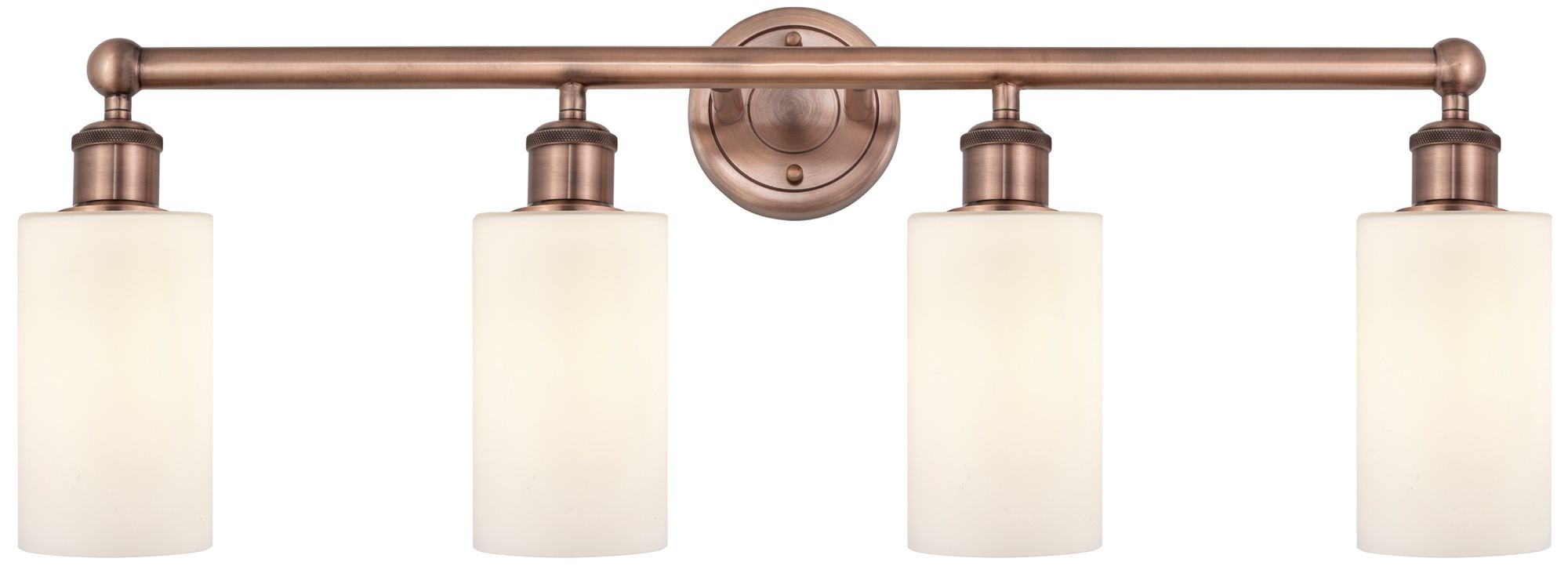 Clymer 30.88"W 4 Light Antique Copper Bath Vanity Light With White Sha