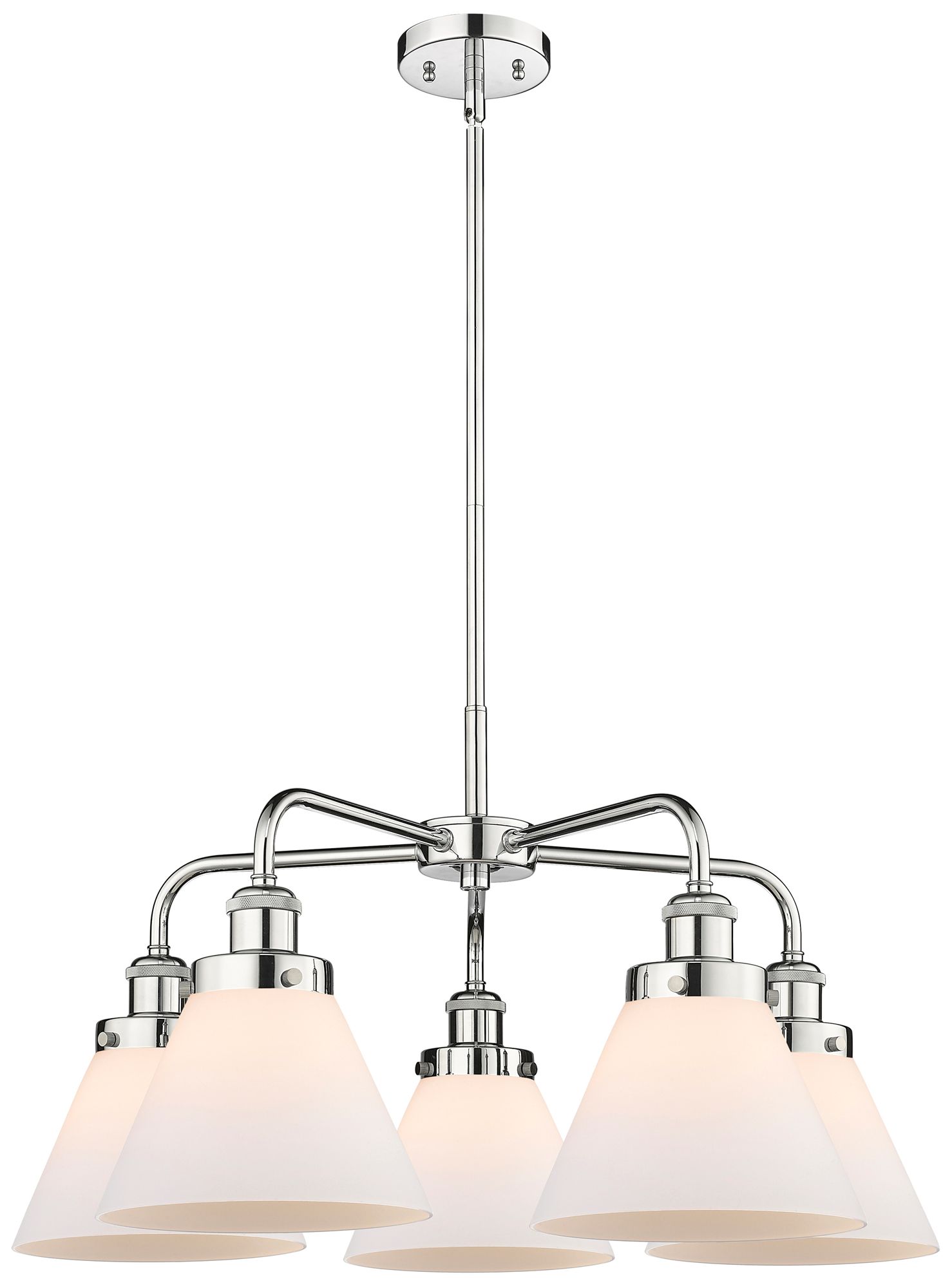 Cone 25.75"W 5 Light Polished Chrome Stem Hung Chandelier w/ White Sha