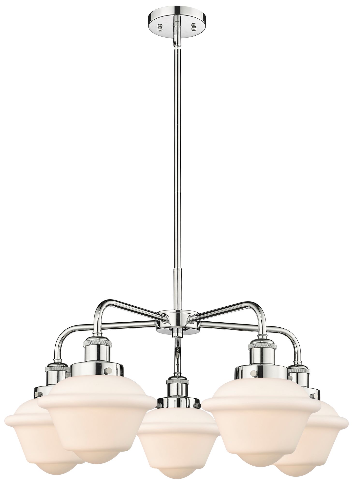 Oxford 24.5"W 5 Light Polished Chrome Stem Hung Chandelier w/ White Sh