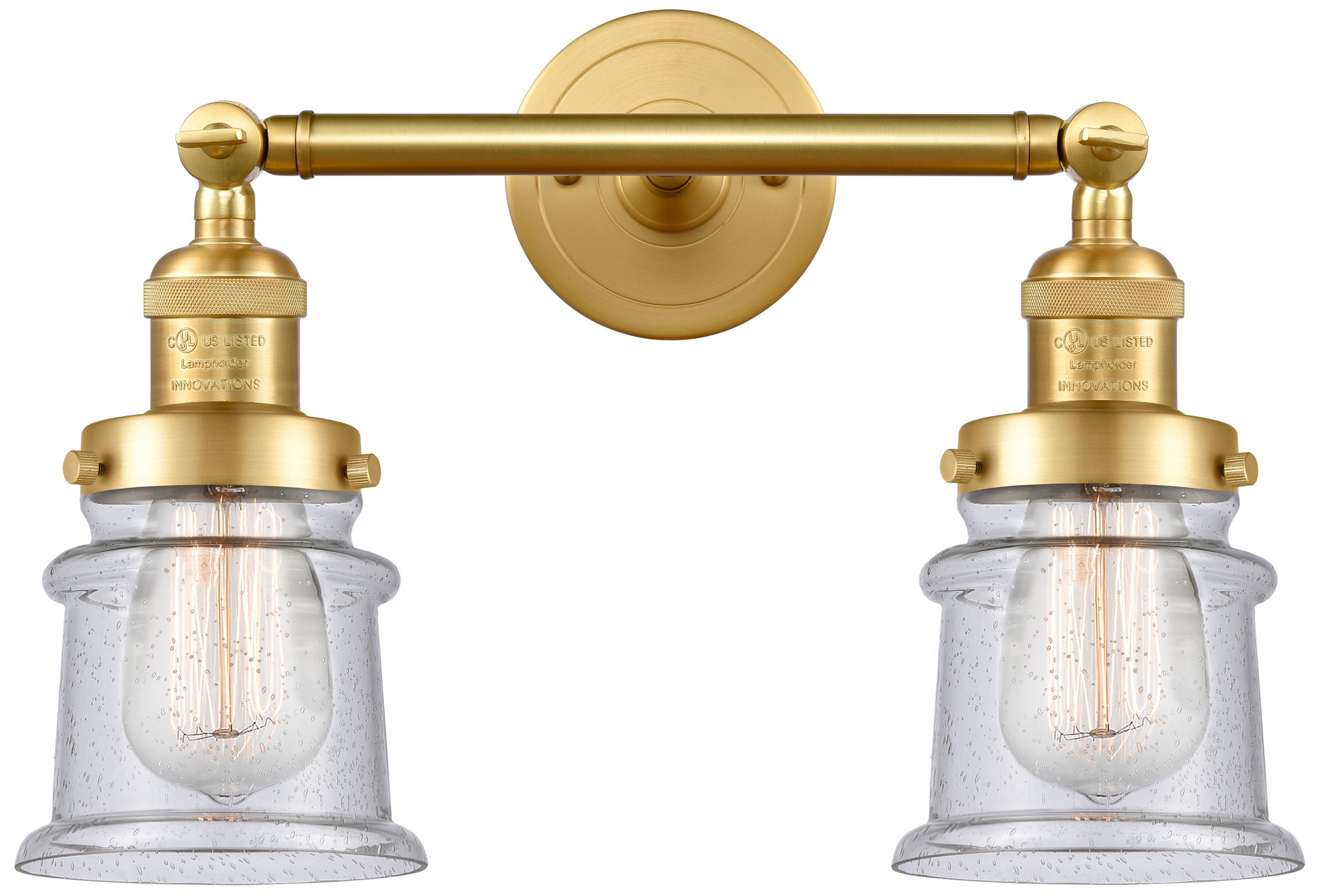 Small Small Canton 17" 2-Light Satin Gold Bath Light w/ Seedy Shade