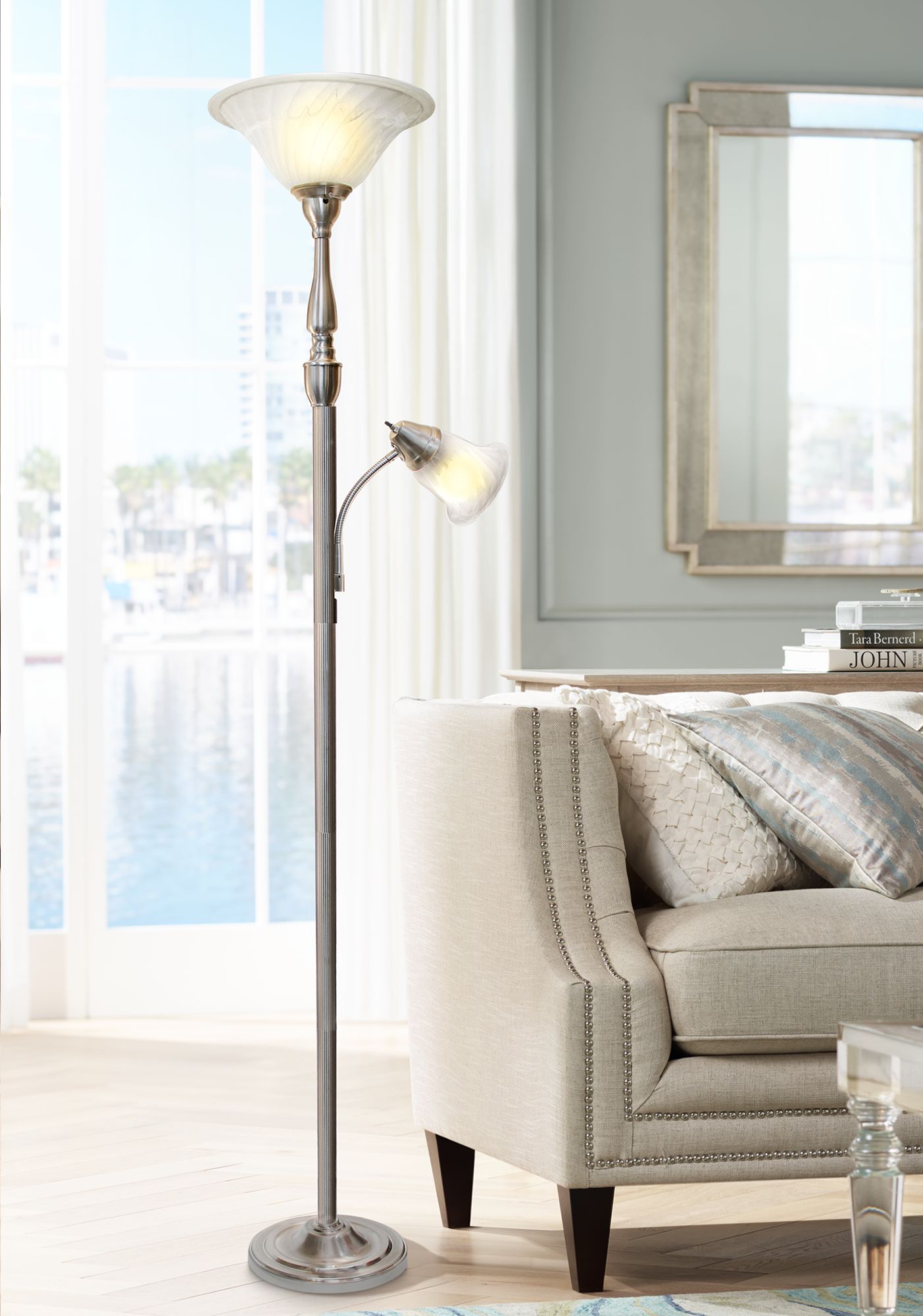 Elegant Designs Mother Daughter 71" Nickel 2-Light Floor Lamp