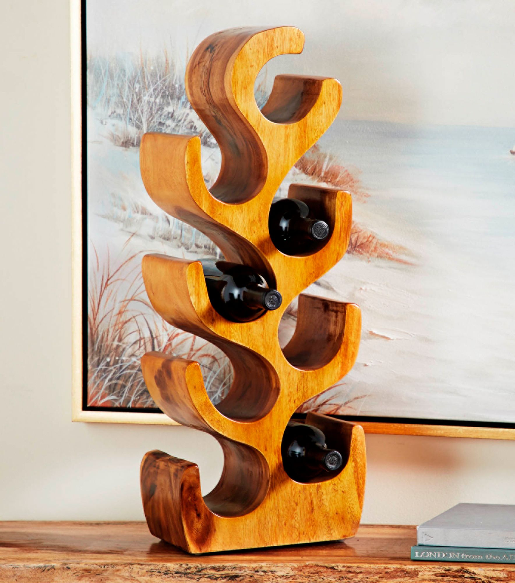 Natural Acacia Wood 28" High 8-Bottle Holder Sculpture