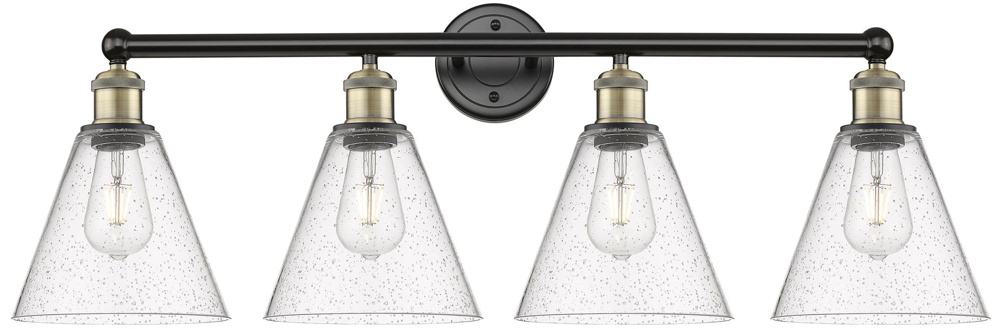 Berkshire 35"W 4 Light Black Antique Brass Bath Light With Seedy Shade