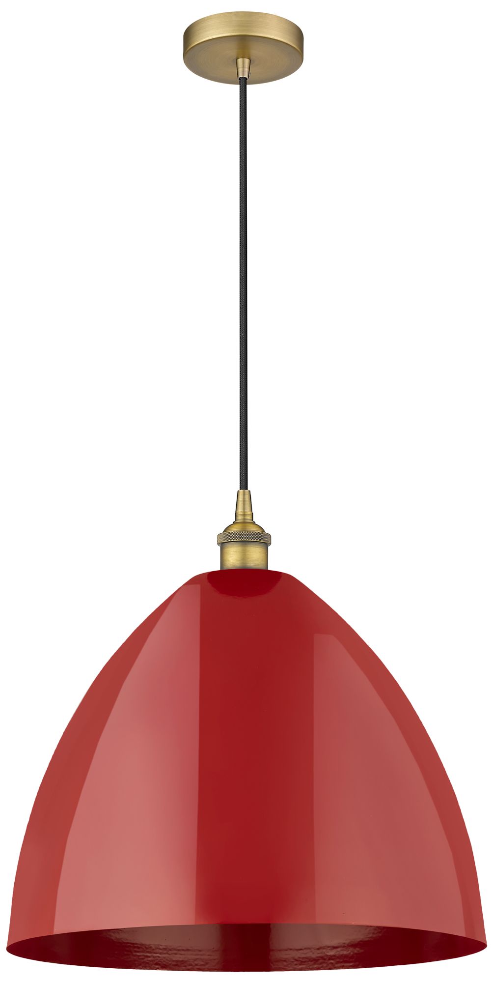 Plymouth Dome 16" Wide Brushed Brass Corded Mini Pendant w/ Red Shade