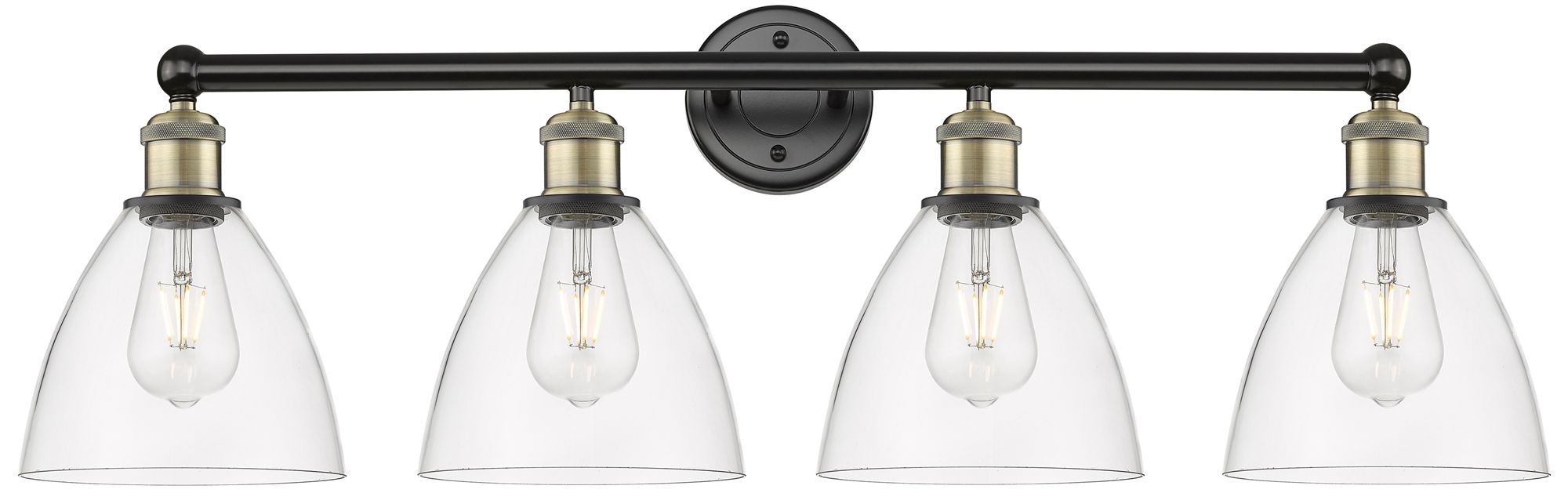 Bristol Glass 34.5"W 4 Light Black Brass Bath Light With Clear Shade