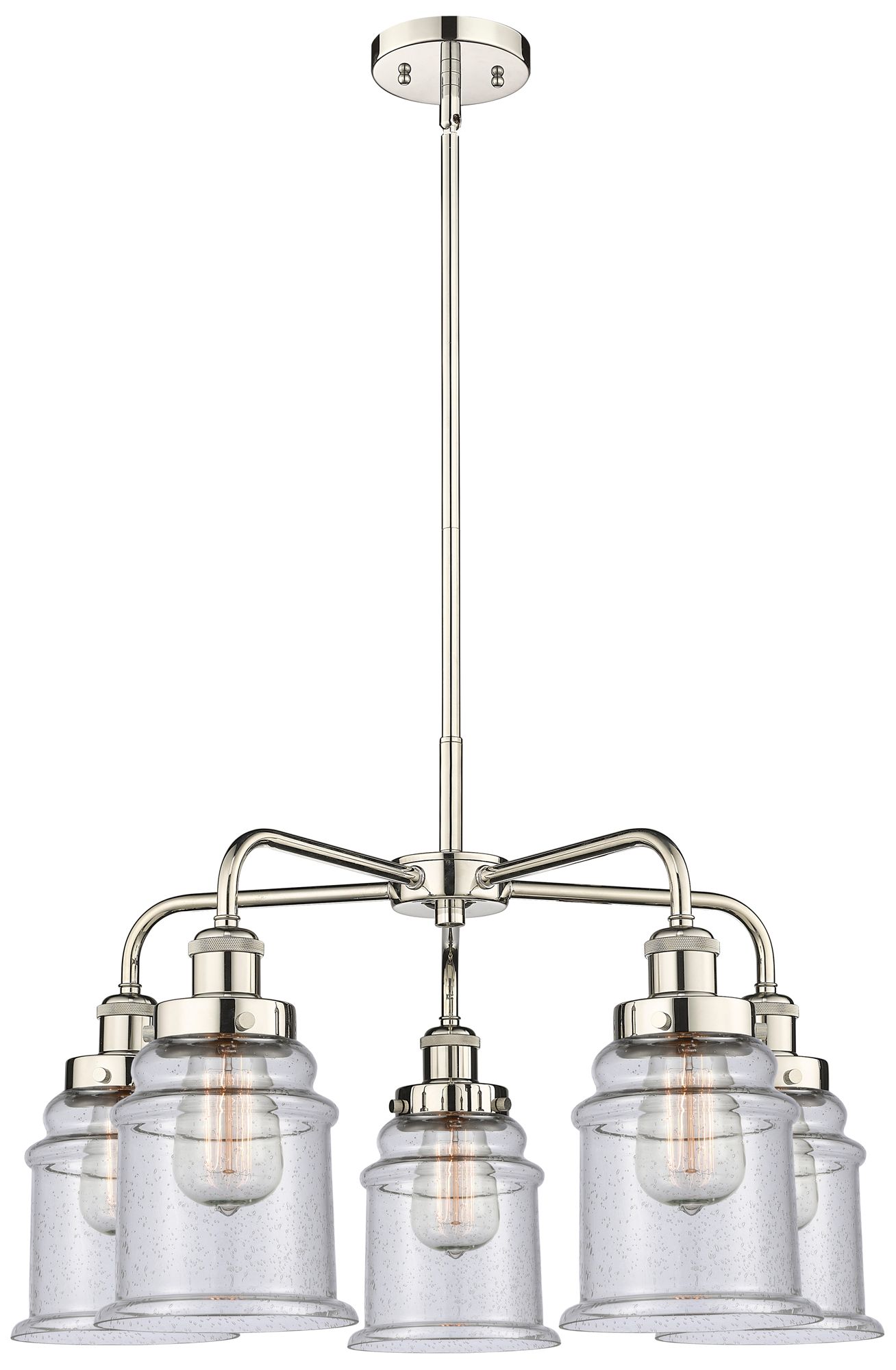 Canton 24"W 5 Light Polished Nickel Stem Hung Chandelier w/ Seedy Shad