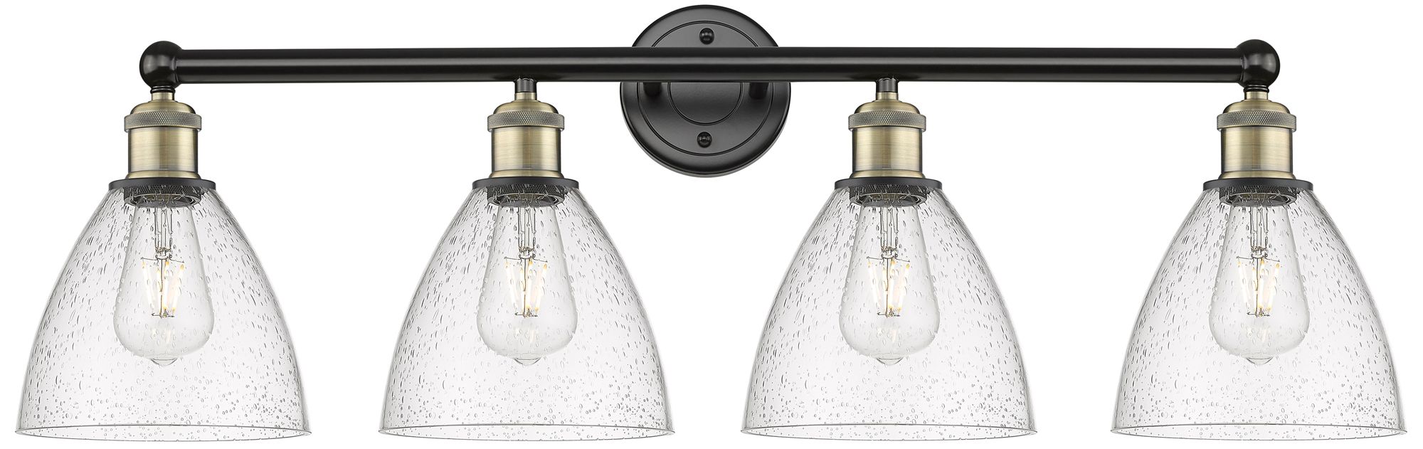 Bristol Glass 34.5"W 4 Light Black Brass Bath Light With Seedy Shade