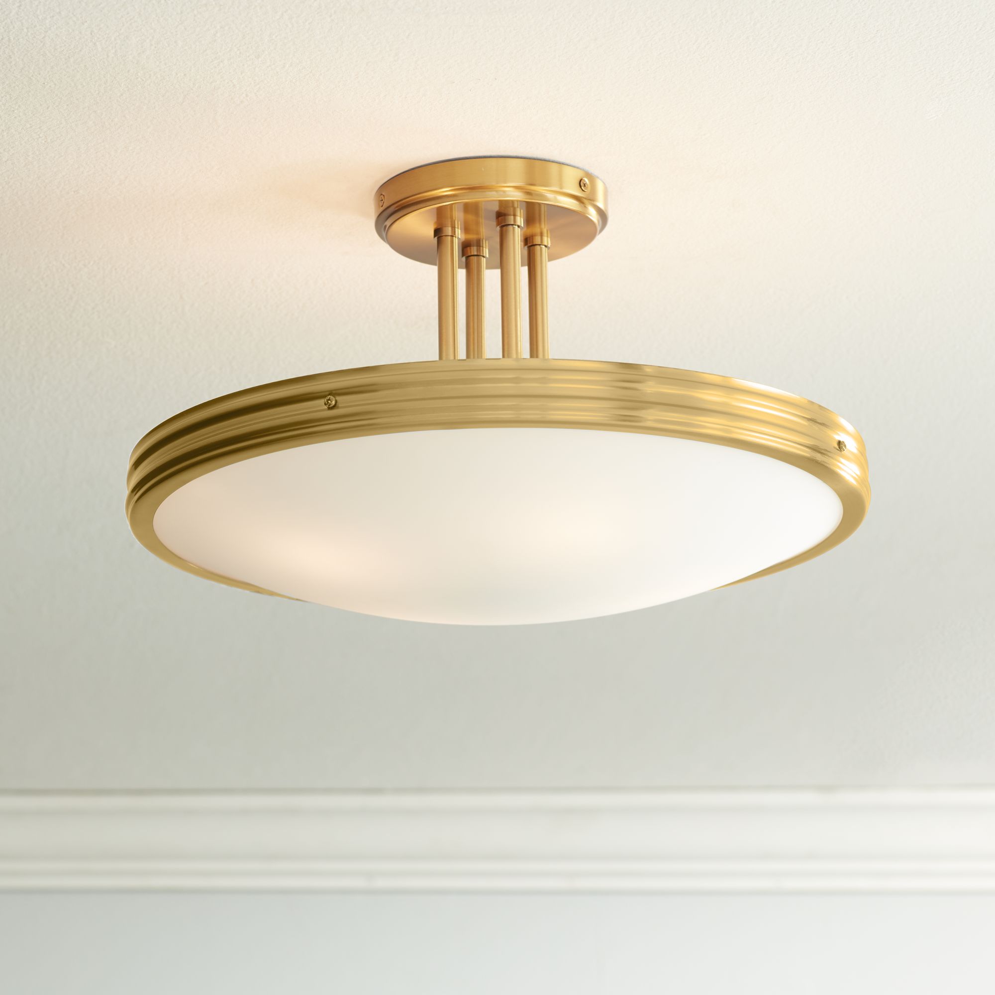 Possini Euro Aldo 17" Wide Brass and Opal White Glass Ceiling Light