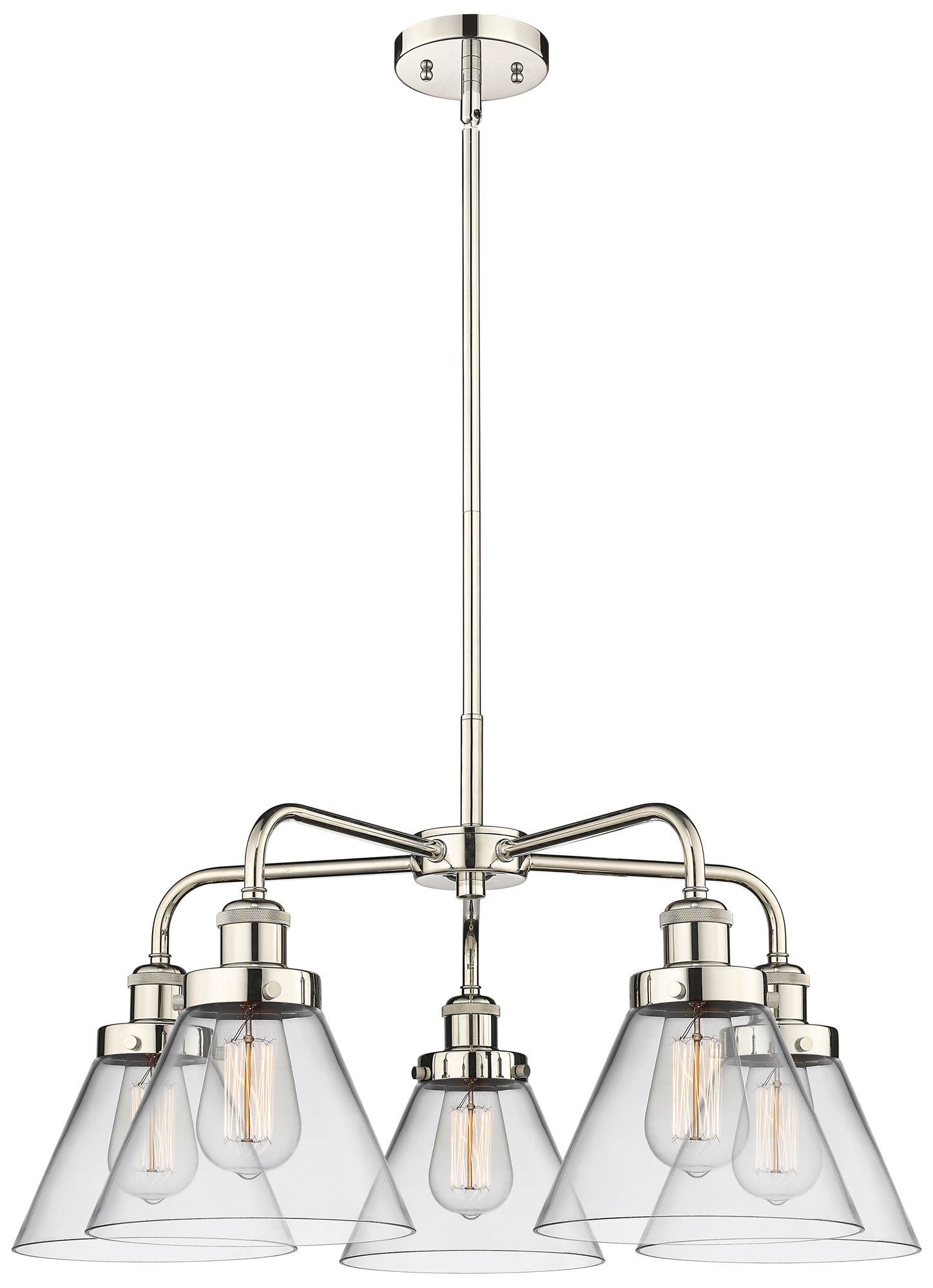 Cone 25.75"W 5 Light Polished Nickel Stem Hung Chandelier w/ Clear Sha