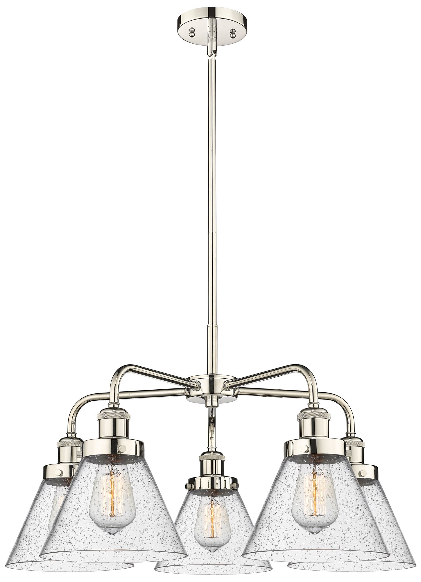 Cone 25.75"W 5 Light Polished Nickel Stem Hung Chandelier w/ Seedy Sha