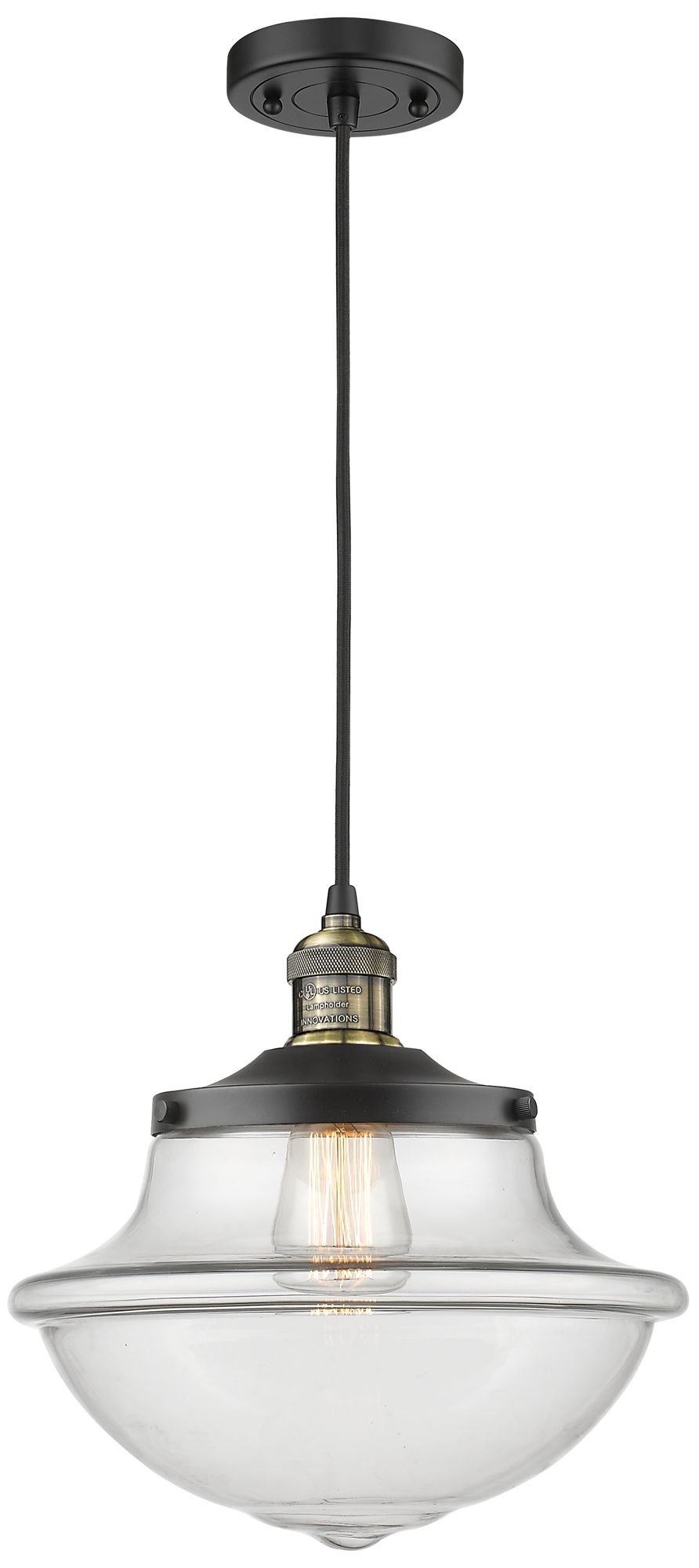 Franklin Restoration Oxford 12" LED Mini Pendant - Black Brass - Clear