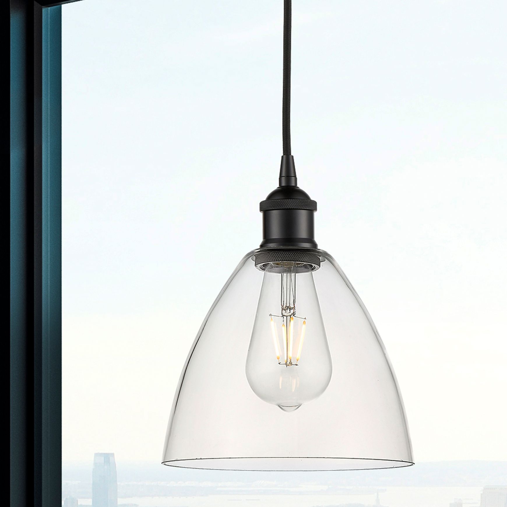 Edison Dome 8" Matte Black Cord Hung Mini Pendant w/ Clear Shade