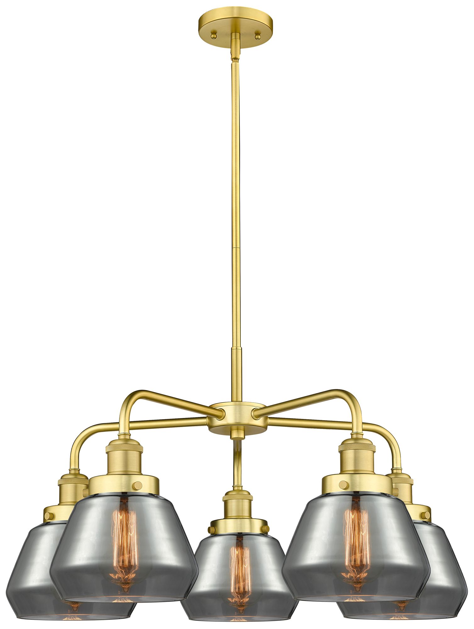 Fulton 24.5"W 5 Light Satin Gold Stem Hung Chandelier w/ Smoke Glass S