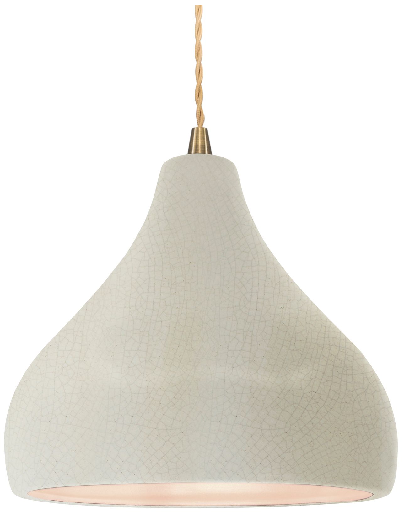 Radiance 11.5"W Droplet Brass Beige Cord Pendant w/ White Crackle Shad