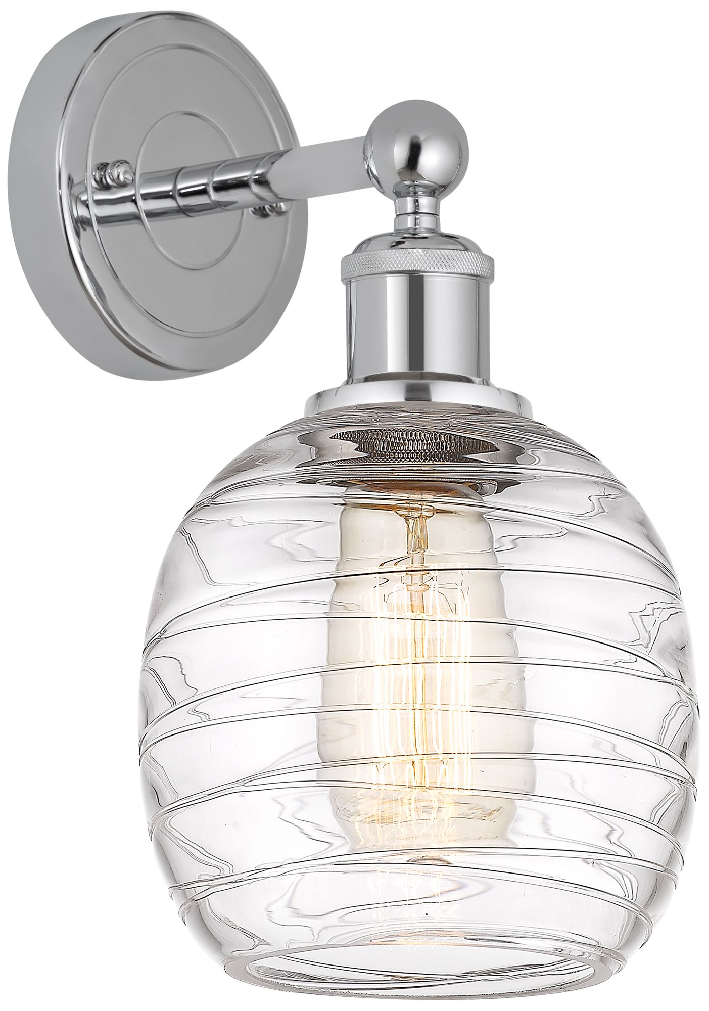 Edison Belfast 6" Polished Chrome Sconce w/ Deco Swirl Shade