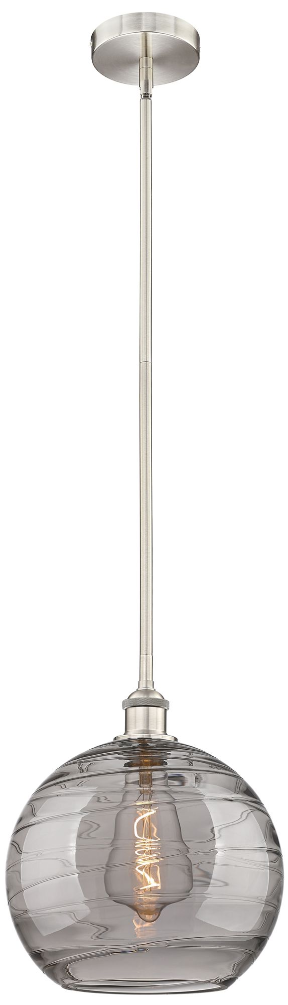 Edison Athens 12"W Satin Nickel Stemmed Mini Pendant w/ Smoke Swirl Sh