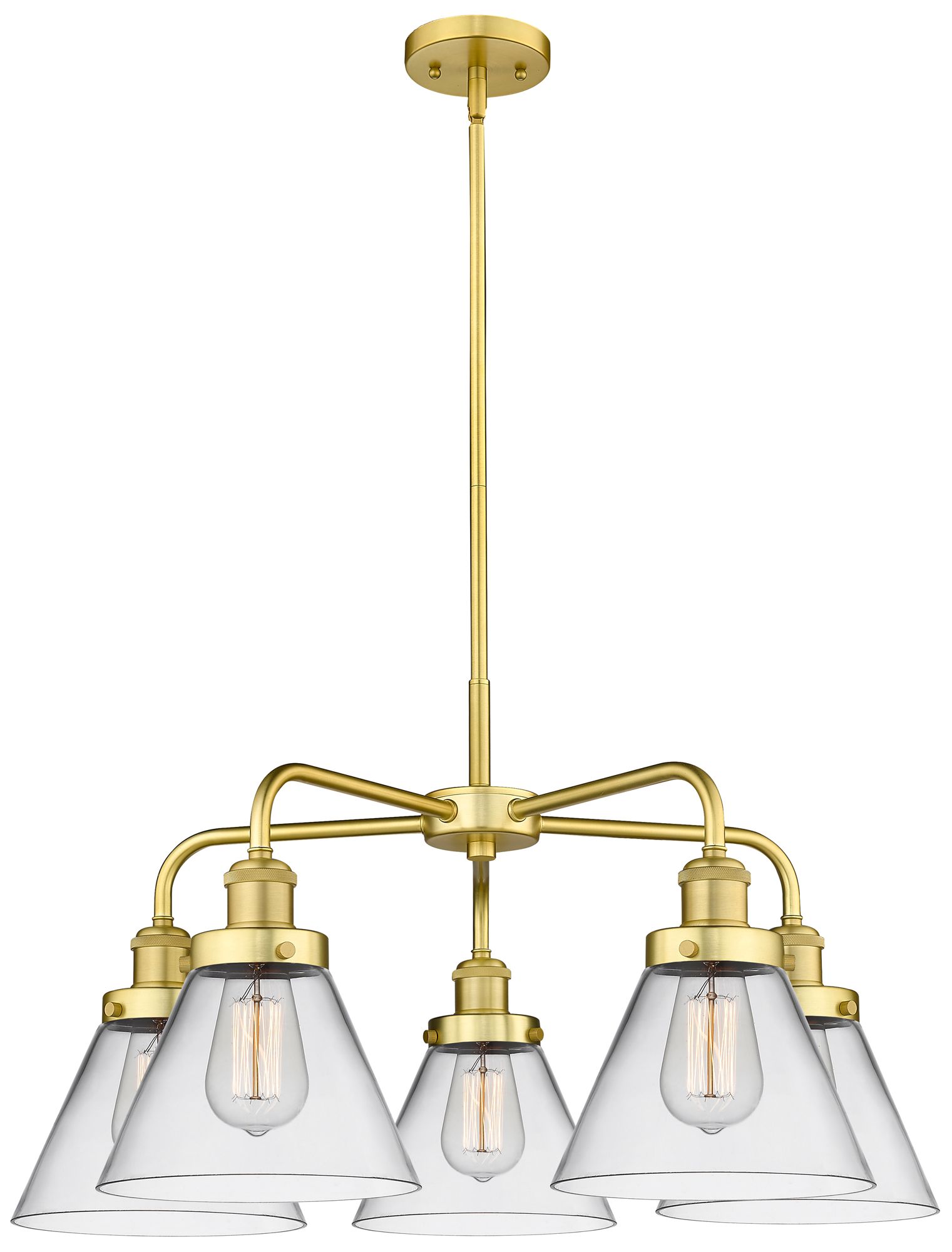 Cone 25.75"W 5 Light Satin Gold Stem Hung Chandelier With Clear Glass