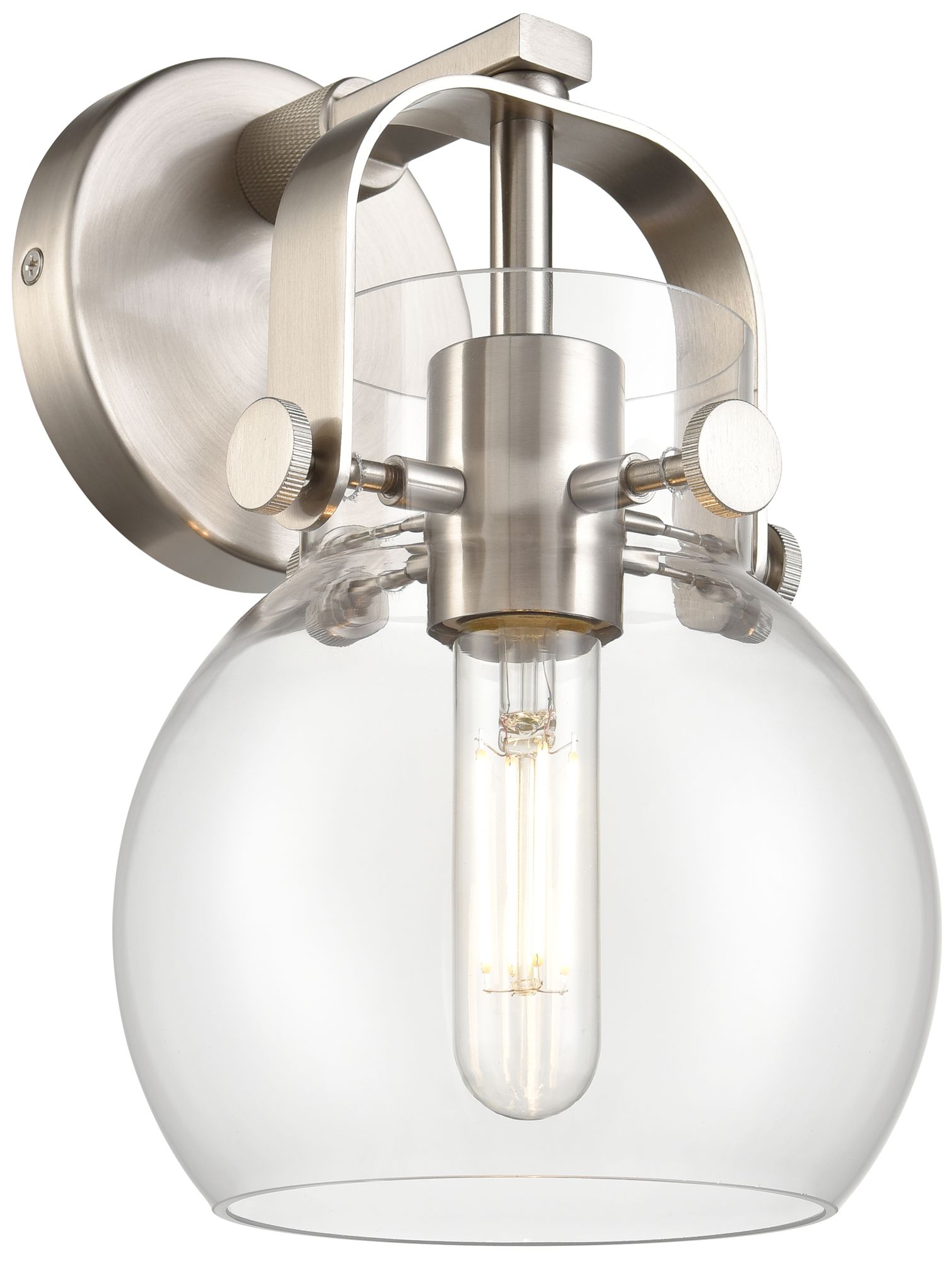 Pilaster II Sphere 9.75" High Satin Nickel Sconce With Clear Shade