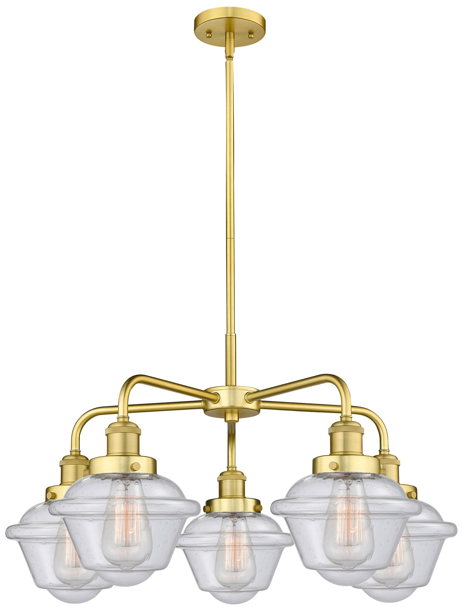 Oxford 24.5"W 5 Light Satin Gold Stem Hung Chandelier w/ Seedy Glass S