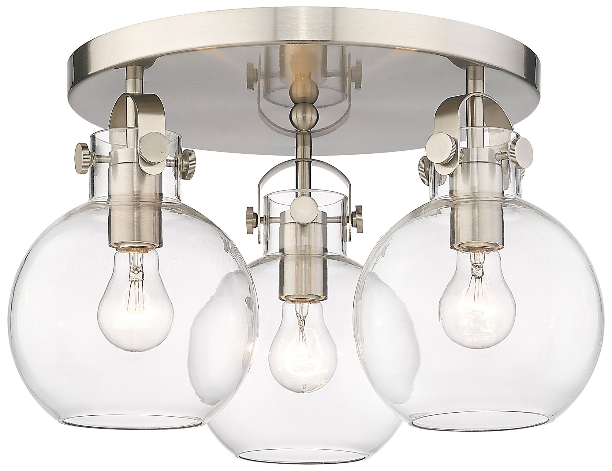 Newton Sphere 19.63" Wide 3 Light Satin Nickel Flush Mount With Clear