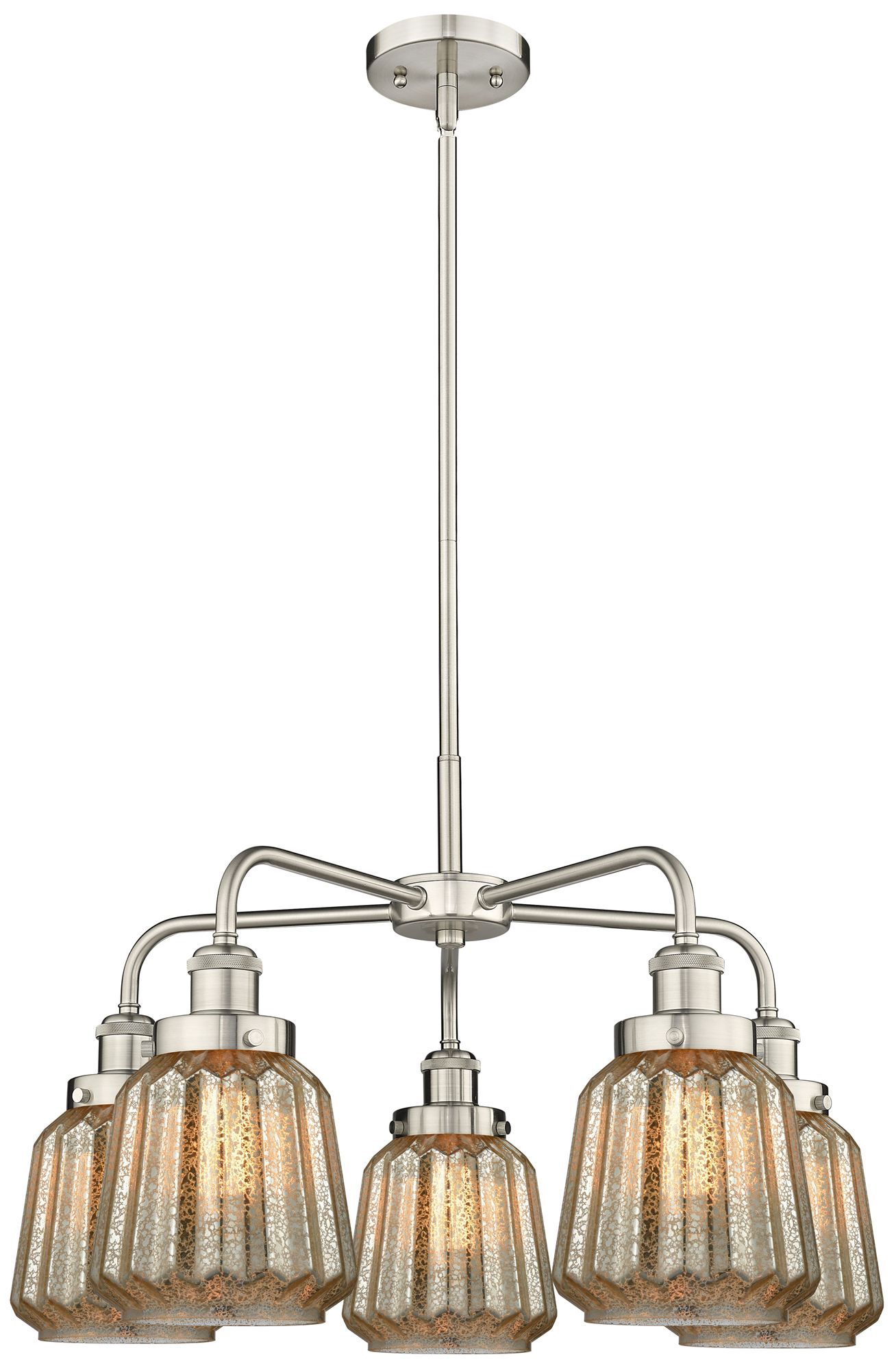 Chatham 24.5"W 5 Light Satin Nickel Stem Hung Chandelier w/ Mercury Sh