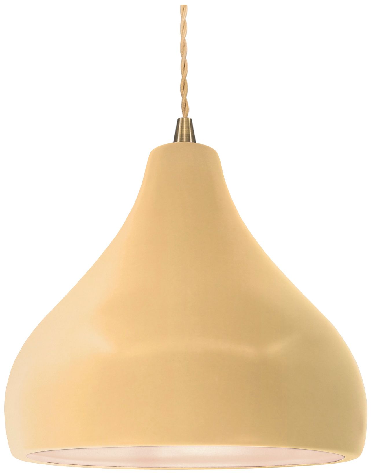 Radiance 11.5"W Droplet Brass Beige Cord Pendant w/ Muted Yellow Shade