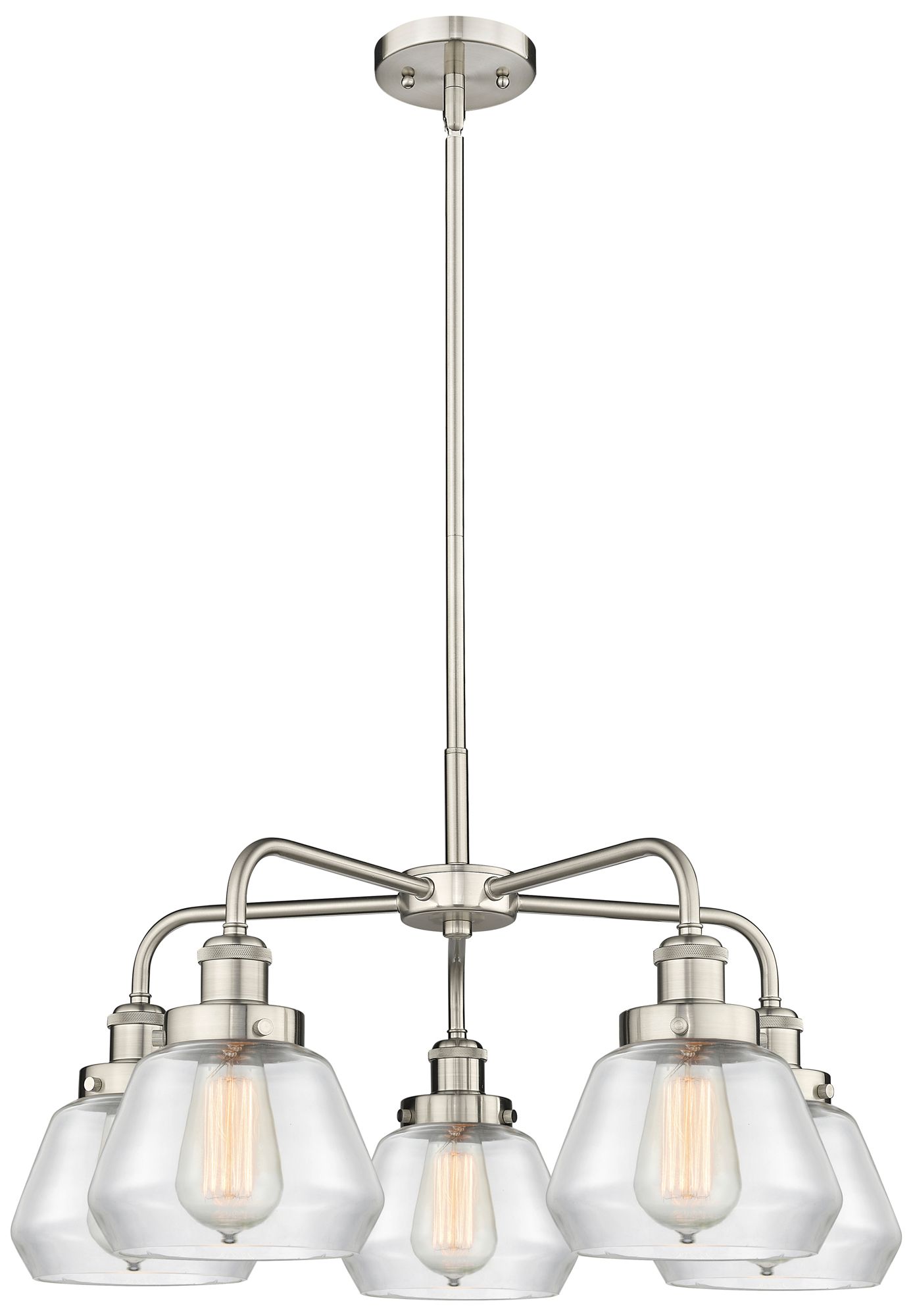 Fulton 24.5"W 5 Light Satin Nickel Stem Hung Chandelier w/ Clear Shade