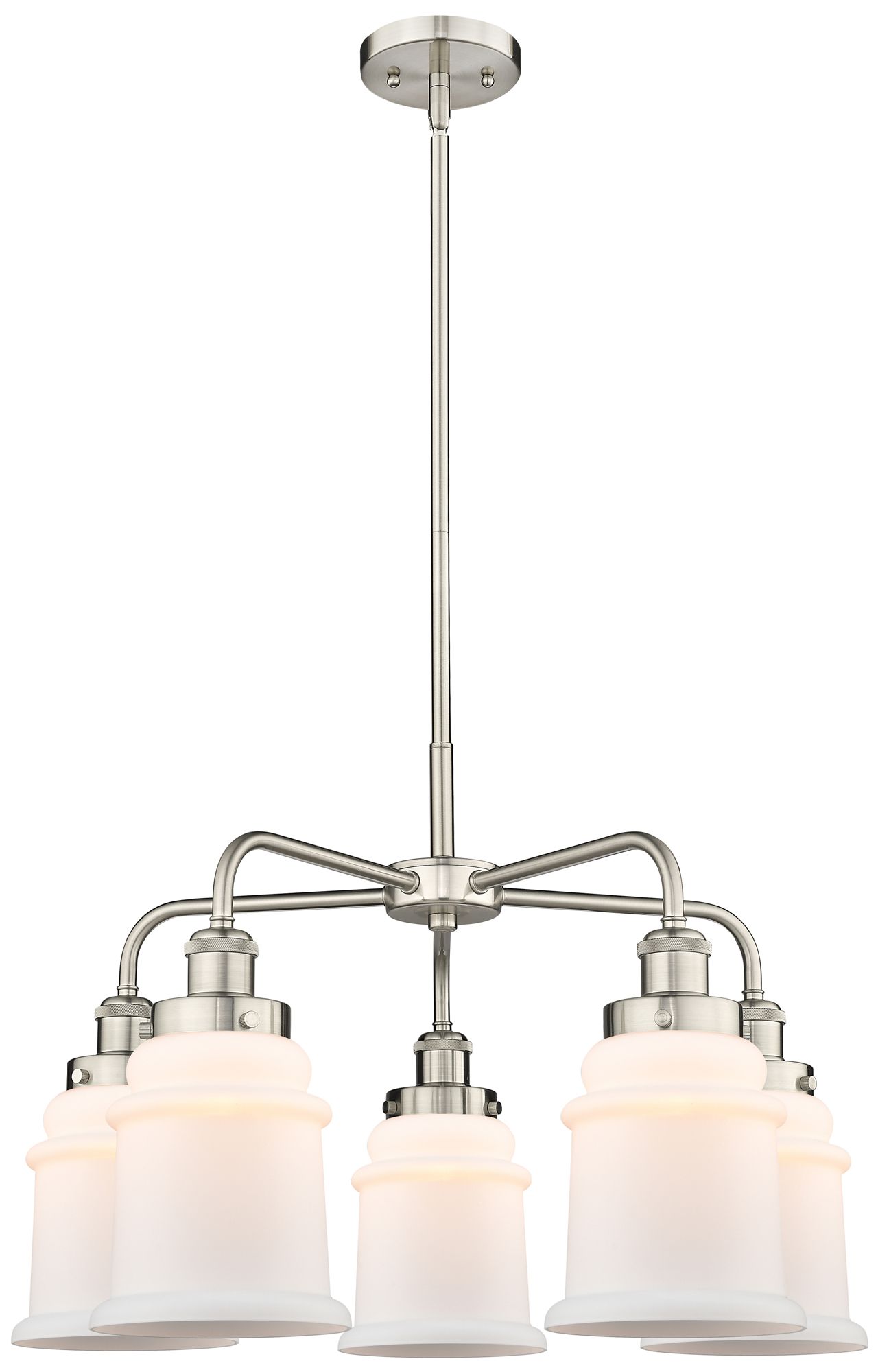 Canton 24"W 5 Light Satin Nickel Stem Hung Chandelier w/ White Shade