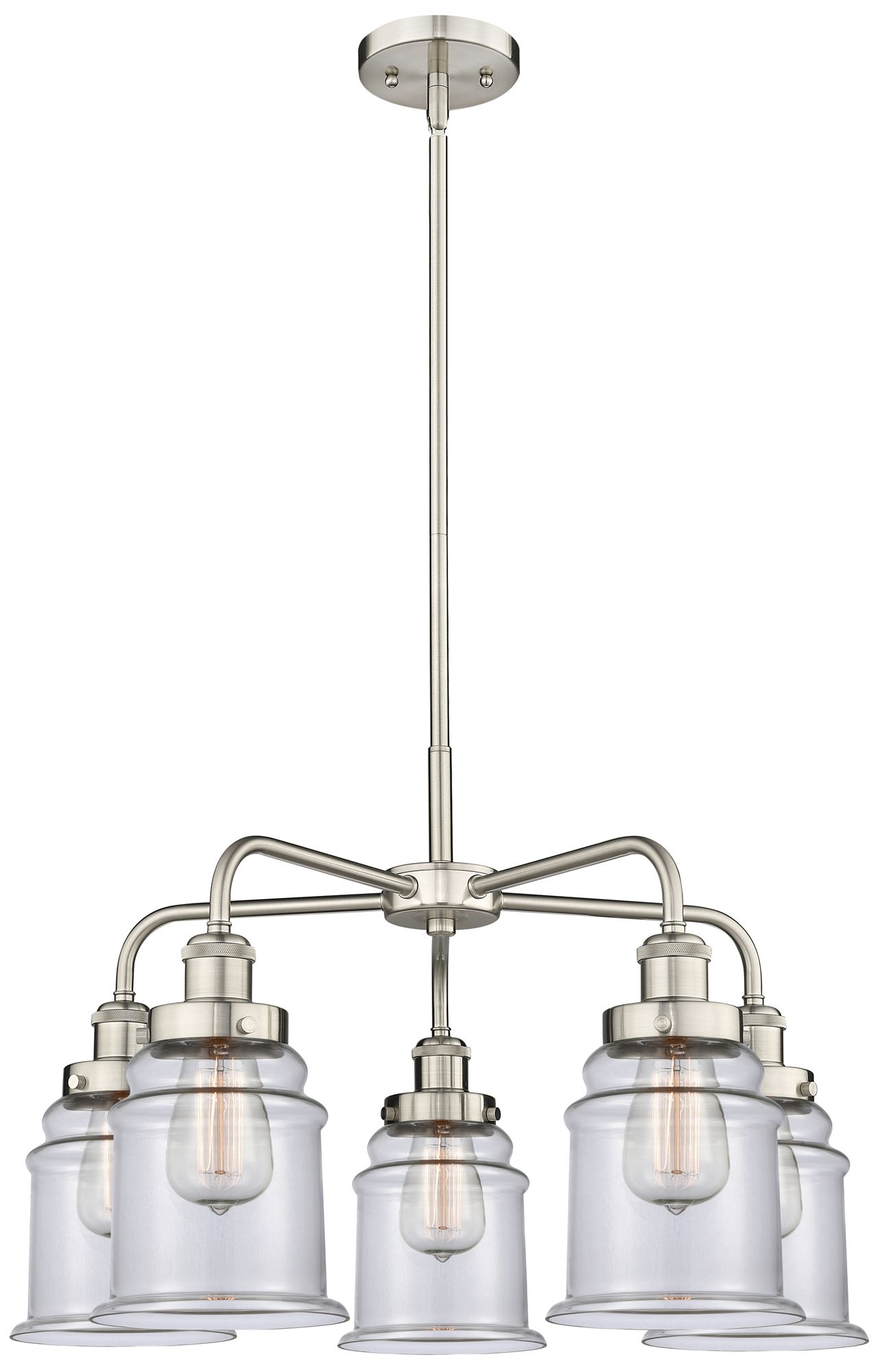 Canton 24"W 5 Light Satin Nickel Stem Hung Chandelier w/ Clear Glass S