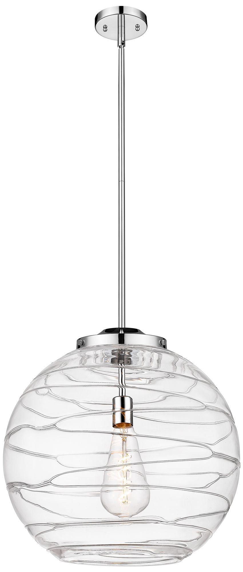 Athens 18" Polished Chrome Pendant w/ Clear Deco Swirl Shade