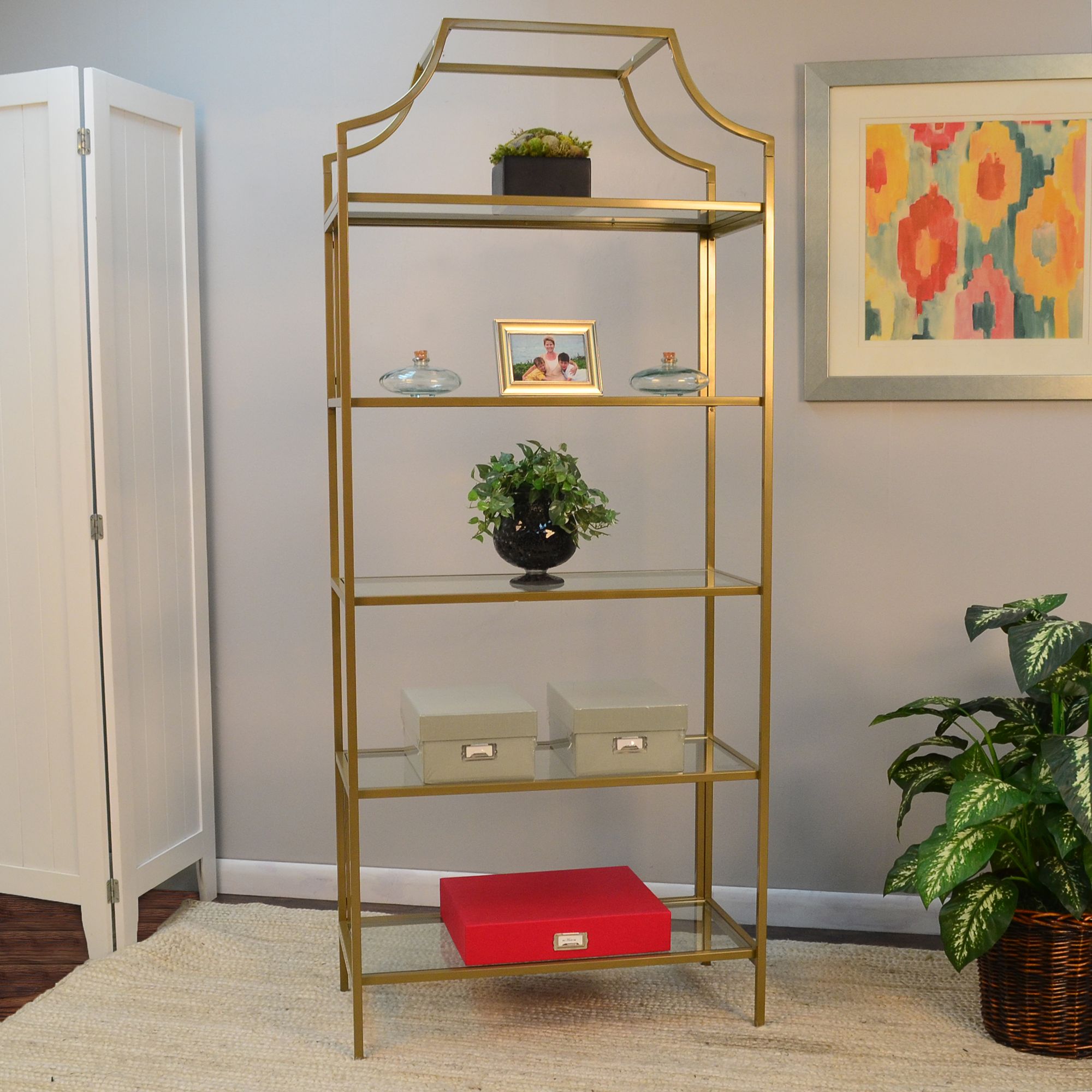 Palmer 30" Wide Tempered Glass Gold Metal 5-Tier Bookcase