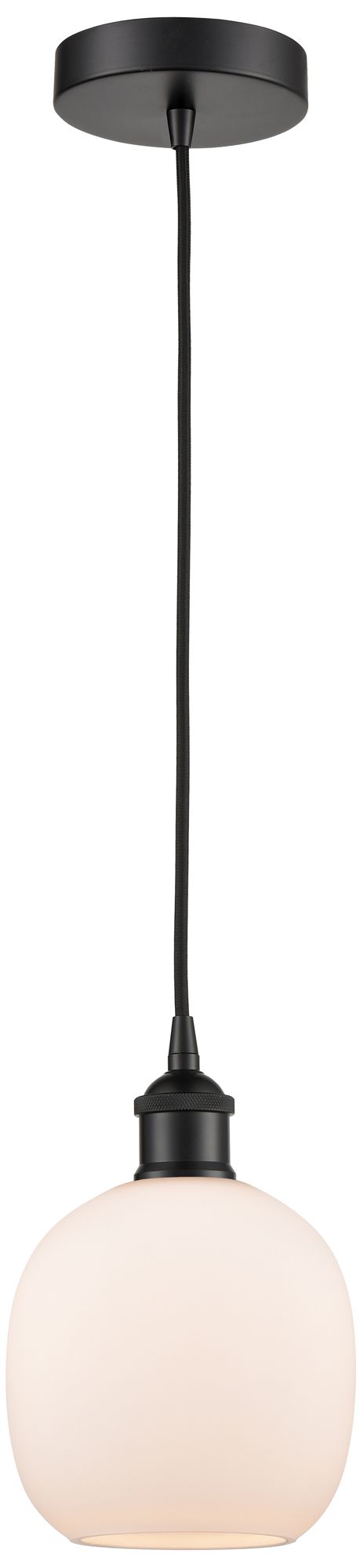 Edison Belfast 6" Matte Black Cord Hung Mini Pendant w/ Matte White Sh